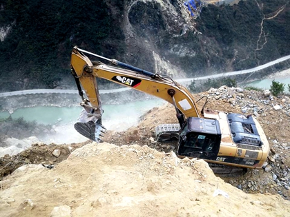 如何在悬崖上方开挖出主桥的施工平台和便道,并且保障县道通行安全,曾一度成了全体管理人员热论的难题。