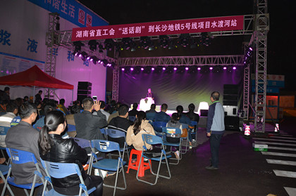 近日,湖南省直工会“送话剧”到中建隧道长沙地铁5号线项目水渡河站,省直工会常务副主席向智勇、省直工会副主席艾超越、项目部全体管理人员、现场劳务工人共计200余人观看了此次精彩演出。