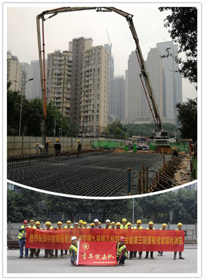 11月13日,中建隧道重庆轨道九号线八标刘家台站第三段冠梁、盖板顺利浇筑。