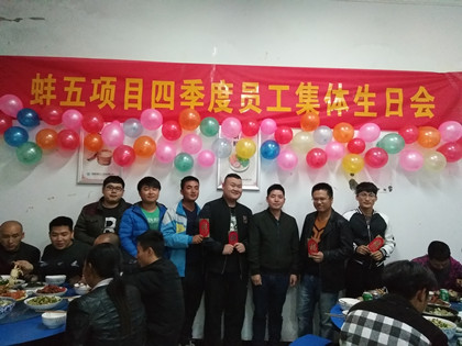 11月16日,在中建隧道蚌五高速项目举办第四季度员工集体生日会,这也是蚌五高速项目自进场以来的第一次生日会。