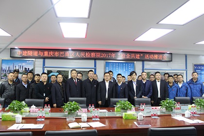 12月13日,中建隧道与重庆市巴南区人民检察院2017年检企共建活动推进会在龙洲湾项目成功举办,重庆市巴南区人民检察院党组成员、职侦局局长许云,巴南区检察院职务犯罪预防科科长徐正茂,中建隧道党委副书记、纪委书记詹畅生,纪委副书记兼审计部经理兼纪检监察部经理刘卫民等领导出席。中建隧道龙洲湾隧道工程项目共40余人参加了此次活动。