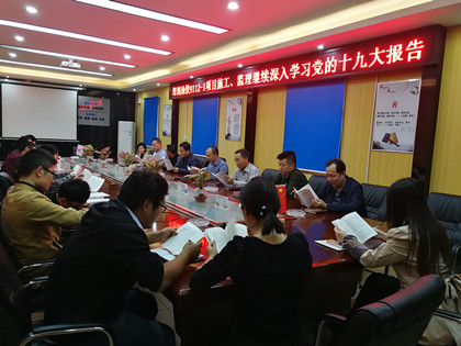 12月16日,深圳地铁9112-1标施工、监理管理人员人手一册学习《决胜全面建成小康社会,夺取新时代中国特色社会主义伟大胜利——十九大报告》,由项目党支部书记徐新宝带头宣讲,并通过交流讨论、谈体会、讲认识,统一思想、凝聚力量,再次掀起了学习宣传十九大精神的新高潮。