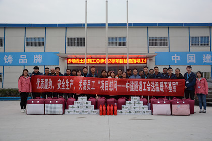 检查结束后,公司工会为项目员工送温暖,项目全体管理人员参与活动。检查组将牛奶、洗衣液、被子等冬日慰问品送至管理人员手中。工会代表樊凤琴表示:中建隧道崇尚信和文化,重视人文关怀,希望大家能够在冬日感受到温暖,工作快乐,生活幸福。