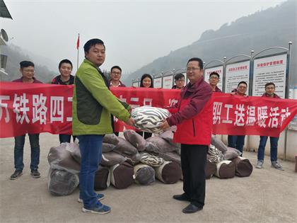 郑万铁路四工区位于重庆市云阳县栖霞镇红龙村,该地四面环山,降水量大,冬季多雨水,气温低且气候湿润。虑职工冬季保暖问题,工区工会为全体员工购置了厚棉被及毛毯,并由工区班子及工会小组亲手送到每一个员工手中。