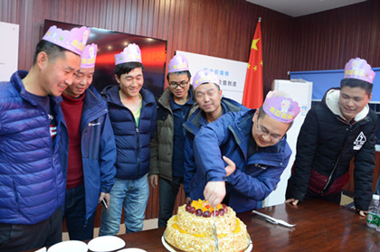 在生日歌的背景音乐声中,钟自祥代表项目分别为寿星戴上生日帽并赠送了生日贺卡。“祝你生日快乐,祝你生日快乐……”其他员工们拥着寿星们围在蛋糕旁,为“寿星们”齐唱《生日快乐》歌表示祝贺。香甜的蛋糕,吃在嘴上,甜在心里。食堂还为寿星们准备了长寿面,细长的面条里缠绕的是项目对员工的深切关怀。大家纷纷拿出手机拍照,咔咔咔声不绝于耳,都想记录下这温馨的画面。