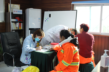 劳务女工参加抽血检查