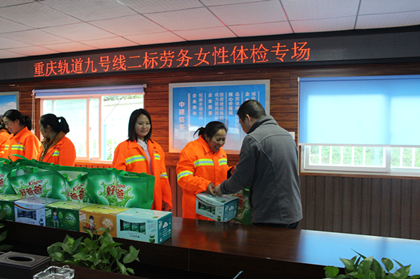 劳务女工排队领取节日慰问 “来,大姐,在这里抽血!” “你的这个血压有点高噢,平时要注意健康饮食。” 平日安安静静的会议室内,今天怎么闹闹哄哄还时不时的夹杂着诸如“血压、彩超”等的字眼呢?中建隧道重庆九号线二标正专门组织现场劳务女工人进行体检,为辛苦在一线的女工人送上贴心的关怀。 “九号线施工任务紧,我们在一线更能直观的感受到这个压力,平日有个头疼脑热的,一是没时间,二是也觉得没什么,忍忍就行了,很少去医院。没想到咱们项目这么好,送了牛奶、洗衣液,还专门给我们组织体检,我们很感动!”天沙工区的杨大姐体检结束,拿着慰问品高兴的说道。 重庆轨道九号线作为惠及百姓的民生工程,施工任务重,节点工期压力大,奋斗在一线的农民工兄弟们成为了施工生产中最辛苦的人。 项目经理黄成表示,今年会将关爱农民工作为项目工会的重点工作,此次“三八节”劳务女工人体检只是重庆九号线二标关爱农民工系列活动之一,后期还将从加强人文关怀、关注农民工健康、提升个人技能水平等方面给予农民工兄弟们实际的帮助,以实际行动践行“五同”原则。(文/中建隧道重庆轨道九号线二标:王晓梅)