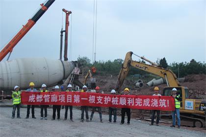 成都综合管廊第一根围护桩浇筑 4月20日,成都综合管廊项目第一根围护桩浇筑落下帷幕。围护桩浇筑完成,标志着成都管廊项目迈出重要的一步。 成都综合管廊项目位于成都市天府新区,地下综合管廊位于天府国际机场南一线右侧辅道下方,总长11.795Km,其中我公司管段长3.1km,合同额约3.3亿元。合同工期300天,受今年雨季影响,有效施工时间不足6个月,工期严峻。施工过程中,项目部积极与各方沟通,克服了前期场地狭小、周边管网复杂、紧临建构筑物等困难。 成都管廊第一根围护桩的顺利浇筑,为后续作业面的拉开、年度产值目标完成奠定了良好基础。同时也在成都片区打响了第一枪,为拓展市场做好开头军。 (文/成都管廊项目:黄莉)