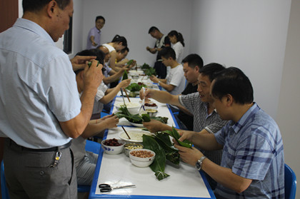 颁奖仪式  热火朝天地包粽子 浓情端午节,粽香飘巴南。为了庆祝龙洲湾项目的第一个“龙舟节”,更为了增强员工凝聚力,丰富员工生活,在端午佳节即将到来之际,隧道公司龙洲湾工程指挥部与重庆茂和基础设施建设有限公司(项目公司)共同开展了一场“迎端午、包粽子比赛”活动。 6月7日下午4点,项目食堂里热闹起来,排列整齐的餐桌上摆好了准备好的糯米等材料。近20名员工自由组队,围坐在餐桌旁开始包起粽子。员工们个个全情投入、队员间相互协作、队与队之间也交流着包粽子的技巧,大家包得不亦乐乎。“你这包的是手枪吧!”不知是谁开玩笑指着一人手中“手枪型”的粽子说,大家都跟着哈哈大笑起来。时间一分一秒地过去,随着各支队伍将盘中的糯米包完,比赛正式结束。各队将自己所在队伍的作品都用盘装好,等待大家的评判。各队作品可谓造型各异,各具“特色”: 有的像钱包,四四方方;有的像拳头,不成规则;还有三角形、锥形,各不相同。大家都指着盘中的“怪物”乐呵呵地问着这是谁包的,那又是谁包的,因为它们都是那么的“有型”。一番点评,又引得哄堂大笑。 包粽子比赛还特别设立了一个奖项叫做“最佳颜值奖”,最后有三名员工获得此殊荣。 龙洲湾的第一个“龙舟节”,大家学习了如何包粽子。活动传承了中华文化,增强了员工凝聚力,培养了员工集体意识,丰富了员工生活,体现了龙洲湾项目“家”的氛围,展现了五局“信和”文化的核心理念。(文/隧道公司龙洲湾隧道工程指挥部:何智)