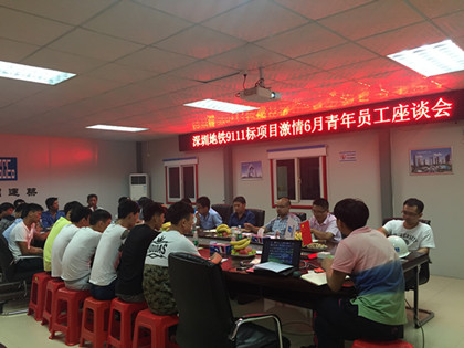 座谈会现场 拧成一股绳,博尽一份力;狠下一条心,共圆一个梦。 6月14日晚上,隧道公司盾构分公司深圳地铁9111标项目为进一步关注青年员工,了解其思想动态,加强与青年员工的交流、沟通,解决实际问题,鼓舞员工工作激情,深圳地铁9111标项目特意召开以“点燃工作激情,打造激情团队”为主题的青年员工座谈会。 会上,深圳地铁9111标项目每一位青年员工根据自身的实际情况,各抒己见,畅所欲言。针对这次座谈会的主题,有高屋建瓴的深刻见解,有未雨绸缪的长远见识,有生动鲜活的切身感受,也有脚踏实地的实干决心。“作为五局的一份子,我们要牢记青年人的责任和担当,要以执着的信念,过硬的盾构施工技术,熟练的操作技能,脚踏实地的立足本工作岗位,以饱满的激情站在新起点,迎接新挑战,创造新成绩;以实际行动创造深圳速度,抓质量,抢工期,抢进度,展现青年人的风采,实现作为一名五局年轻人的价值。贵在坚持难在坚持成在坚持;盾构分公司深圳地铁9111标项目机电总工兼安全总监李正书说” 最后,项目经理罗德静对此次座谈会进行了总结,肯定了这次青年员工座谈会的成果,对座谈会的活跃气氛表示意外和欣喜,并鼓励青年员工立足岗位,满怀激情的投入工作,最大程度地激发其工作热情,增加工作的计划性,有条有序的不要没有计划的盲目去工作,希望今后每月一次的青年员工座谈会能有更好的结果,从而促进公司和青年员工的长足发展。他还说:点燃工作激情,打造激情团队,奋起飞翔,路就在脚下。 (文/隧道公司盾构分公司深圳地铁9111标项目:苟岳会)