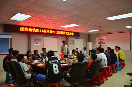 新员工欢迎会现场  新员工发言 Welcome to our family !欢迎来到五局隧道公司盾构分公司深圳地铁9111项目。 7月25日晚上,深圳地铁9111标项目经理罗德静、机电总工李正书、生产经理王军、副总工邵云及各部门负责人特意为2016届新员工召开欢迎会。 会上,李正书首先代表目全体员工欢迎新员工的加盟:你们的加盟为我们注入了新的血液,添加了新的希望,盾构是发展前景很大的企业,人才汇聚的新兴团队,自盾构分公司年成立以来,我们的队伍每年都在壮大,对于各位新同事而言,加入这个团队意味着要接受新的挑战、踏上新的征程,付出的越多,收获就越多,作为一名老员工,很高兴能在这里与大家分享在五局、隧道、盾构这个大家庭成长、工作的经历与体会。 接着,王军针对新员工刚刚入职时的职业规划、后期遇到问题时的困惑、高压工作时的挫败、动摇做了诠释;他说:不懂就问,凡事多思考、多请教,大家相互帮助,把工作尽职尽责干好。咱们企业做的好,咱们也有光,因为我们是五局隧道盾构人。 最后,罗德静对此次的新员工欢迎会作出总结:大家应充分认识团队协作的重要性。这需要我们从小事做起,立足现场,踏踏实实,尽快融入自己的工作团队;其次,需要我们虚心向身边有经验的同事学习,从学校刚毕业,我们需要尽快的转换角色,适应环境,具备一定的业务能力;宽容对待身边的人和事。我们在进入一个新的环境时,总会经历一个磨合阶段,正确处理与同事之间的关系,正视盾构分公司发展带来的问题,树立正确的工作态度,少几份抱怨,多几分努力,付出总会有回报。 最后希望加盟五局的2016届新员工们与五局共成长、与隧道同发展、与盾构共并肩、与企业一起攀登事业巅峰!(隧道公司盾构分公司深圳地铁9111标项目:苟岳会)