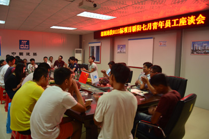 青年员工座谈会现场 七月是花开的季节,也正是少年追梦时。 盛夏七月,骄阳似火,隧道公司盾构分公司深圳地铁9111项目也迎来了七月青年员工座谈会。在会上,项目机电总工李正书首先带头发言:“盾构分公司现在正处于一个快速发展的阶段,每个人都拥有着很多机会,而这些机会是留给有准备的人,在这里希望大家可以好好学并学以致用,为自己的机会创造条件。”随后,副总工邵云说道:“希望现在的新时代青年都可以端正自己的工作态度,先做人,后做事,工作上不懂就多问,既然选择了来项目上就要做好吃苦的准备。同时老员工也要在工作,生活上多多帮助新来的同事,让他们尽快适应这里的工作,生活环境。” 新青年,新面貌,新精神。在领导的带领下,青年座谈会很快活跃起来。会上一位刚毕业的实习生提出:“大家如何度过从学校过度到社会的迷茫期”。一番讨论后李正书说道:“你迷茫是因为你没目标,不知道自己想要什么就不知道自己该如何做。青年员工要树立自己的人生目标,找到一个动力一个精神的支撑点;在工作中要锻炼自己坚韧的品质,面对挫折、面对不公平要学会拿得起放得下,克服急功近利的缺点;青年员工要提高自己面对复杂环境的能力,要向先进看齐,要进行有创造性的工作。”随后生产经理王军说:“作为五局的新鲜血液要敢拼敢闯,不要因为害怕犯错,就什么都不去做,希望大家在以后的工作中遇到问题多想为什么?” 七月的晨曦激励青年勇往直前,七月的余晖守护青年梦的翅膀。(文/隧道公司盾构分公司深圳地铁9111项目:张秀洁)