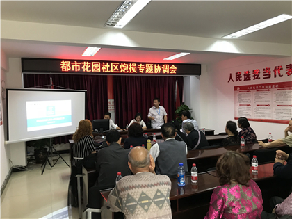 协调经理尹辉向都市花园社区居民代表进行解说