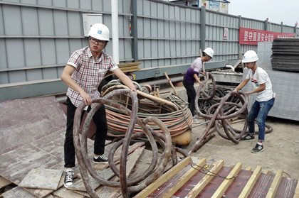 蟠龙路站南端施工场地狭窄,同时施工工序繁多,包括车站施工、盾构端头加固施工、盾构临建施工,工作面展开困难,并且存在着交叉作业问题,这给我们现场施工员出了一个大难题。如何与车站施工作业队伍沟通协调、如何与见缝插针展开施工争抢工期成了他们每天思考的重点。由于刚开始进行临建施工时,劳务队伍并未进场,为了不影响施工进度,现场施工员自己挽起衣袖上阵进行材料搬运、废料清场,为现场临建施工准备场地。为了节约时间,施工技术交底选择在现场交底,没有纸,就拿地面做纸,没有笔,就拿木条做笔,直接在地面写写画画,为现场施工员进行交底,指导作业。