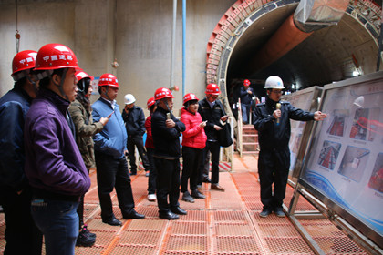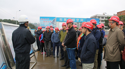 在施工现场,项目经理柳伟从长沙市轨道交通四号线一标工程概况介绍开始,向与会领导介绍了指挥部及项目部自开工至今在安全、质量、技术等各个方面所取得的成绩。项目部现场临建标准化、信息化以及盾构区间新型管片托架、车站新型皮肤式防水等新技术,得到了各领导的一致好评。