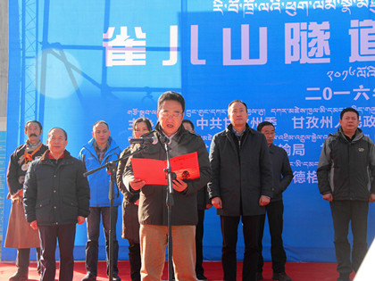 贯通仪式上,益西达瓦在致辞中说道,60年前,以张付林烈士为代表的中国人民解放军和各族干部群众、用生命和鲜血凿开了雀儿山公路,为建成我国首条川藏线打通了咽喉。但雀儿山公路海拔高、等级低、线性差、路基窄、弯道多、养护难、同行能力已经远远不能满足藏区经济社会发展的需求。建成雀儿山隧道成为藏区人民的百年梦想。千呼万唤始出来,千难万险干出来!在党中央、国务院、省委省政府的关怀下,通过历届州县党委政府。全体参建人员的艰苦卓绝的奋斗,克服了难以想象的困难,历经1500多个日夜奋战,今天终于全面贯通!甘孜州人民政府、甘州州全州人民向党中央国务院省委省政府的关怀表示衷心的感谢!向广大参建者和干部群众致以崇高的敬意!