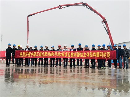 4月13日,随着最后一段顶板浇筑完成,合肥地铁5号线2标杭州路站主体结构顺利封顶,是本标段内首个主体结构封顶。 车站自2017年10月底开始主体结构施工,2标项目部克服环保治理、极端雨雪天气等不利条件,在车站主体与盾构交叉施工的情况下,项目管理人员精心组织、合理安排、真抓实干,历时5个半月,顺利完成盾构始发及车站主体结构封顶等各项节点任务。 合肥地铁5号线2标杭州路站主体长246.6米,分11段,总计33块结构板。车站主体为地下双层双跨,局部双层三跨12米岛式站台车站,结构型式为箱形框架结构。车站采用明挖法施工,车站主体与风亭附属基坑深浅坑同步实施,共设4个出入口,1个安全出入口,2组风亭,车站出入口附属为单层结构,采用明挖法施工,上海路过街通道采用暗挖法施工。 杭州路站顺利封顶后,合肥地铁5号线2标将迎来盾构施工热潮。项目常务副指挥长钟自祥表示,项目部将始终坚持安全卡控,优化资源调配,提升工程品质,保时保质完成各项盾构施工节点任务,高举“品质提升”大旗,为企业开拓合肥地区战略新空间!(文/合肥地铁5号线项目:曾芹)