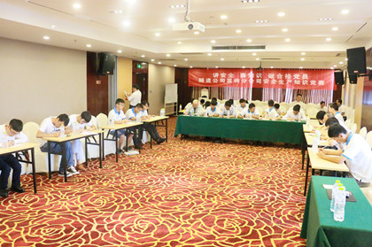 个人闭卷笔试现场  局安全监督部赵玉兰为团体赛第一名获得者颁奖并合影留念  抢答题环节朝阳村代表队回答题目  所有参赛人员及评委合影留念 6月28日上午,隧道公司盾构分公司开展“讲安全 赛知识 做合格党员”安全生产知识竞赛。局安全质量监督部赵玉兰、盾构分公司总经理夏一夫、安全监督部经理刘正及各项目代表、机关全体人员全程观看“运动员”在竞赛中的安全和“两学一做”知识大比拼。 此次竞赛包括个人必答题(闭卷考试)、团队必答题、团队抢答题、团队风险题四个环节,同时穿插观众互动提问。来自机关及各项目21名血气方刚的参赛代表,及各项目管理人员组成的强大亲友团带着满腔热情参与竞赛。他们对安全知识和“两学一做”学习教育相关知识的强烈渴求令整个赛场完全沉浸在比学赶超的热烈氛围中。竞赛过程拼抢激烈、高潮高潮迭起、扣人心弦。特别是在抢答题环节中,各代表队选手精力集中、耳聪手快、分秒必争、争抢答题。互动环节场下观众积极参与,对全面推进公司安全文化和“两学一做”的宣贯起到了促进作用。 经过两个小时的激烈角逐,机关代表队一路高歌猛进获得团体赛一等奖,溁湾镇代表队稳抓稳打获得团体赛二等奖,朝阳村代表队顽强拼搏获得团体赛三等奖。 竞赛结束后,赵玉兰表示此次活动开展的有声有色十分成功,参赛者的激情渲染了现场热烈的竞赛活动氛围,这次活动开展既是一次对各位参赛者知识掌握情况的摸底,也是一次新知识点的学习和积累,更是将“两学一做”知识落实到生产实际。 此次竞赛活动的开展,盾构分公司通过立足本职岗位开展的“两学一做”学习教育活动和全国第十五个“安全生产月”活动,掀起安全技术知识和“两学一做”学习热潮,增强全员安全生产意识,营造良好的安全生产氛围,促进管生产必须管安全、管业务必须管安全的责任落实,提高安全生产管理水平。(文/隧道公司盾构分公司:雷密红)