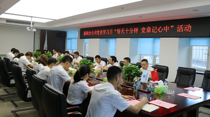 每天十分钟,党章记心中。7月12日,盾构分公司机关党总支全体党员在党总支书记夏一夫的带领下,朗读学习《党章》中的《党员》章节,夏一夫带头逐字逐句诵读,声音洪亮有力,全体党员严肃认真;深圳地铁9112-1项目、徐州地铁3号线项目在党支部书记的带领下,通过每日早会及周例会,加强对党章、党规、《关于新形势下党内政治生活的若干准则》、《中国共产党党内监督条例》、习近平总书记系列重要讲话精神、《中国共产党问责条例》的学习,重温党的精神,增强党员纪律观念。