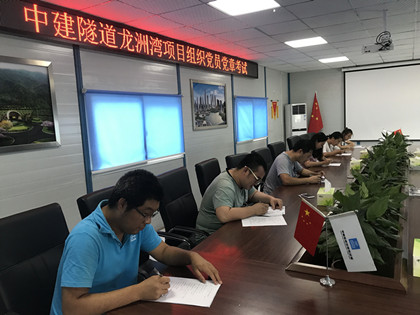 七月党旗心中飘,八月建军来助威。8月1日晚,中建隧道龙洲湾隧道工程三分部组织项目党支部成员进行了党员学习月“结业”考试——考党章。项目党支部书记李敢等6名党员参加了考试。